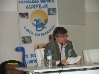 La presentación del evento corrió a cargo de D. J.R. Medina Precioso, Alto comisionado de la R. de Murcia para el Campus Universitario de Lorca, que actuó como presidente de mesa junto a la Concejala responsable de Sanidad, Consumo y ONGs del Ayuntamiento de Lorca, Dña. Antonia López y D. Alfredo Gil representante de ANDADE y de LORCA SIN BARRERAS, las dos asociaciones organizadoras.